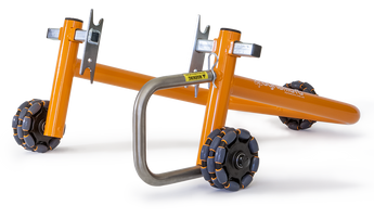 Einarmiger Hinterradständer: Passt auf Motorräder mit einarmiger Schwinge und einer großen zentralen Aussparung in der Hinterradnabe. Austauschbare Spindeln, die sich leicht an verschiedene Motorradmarken anpassen lassen: BMW, Ducati, MV Agusta, Honda, KTM, Triumph.