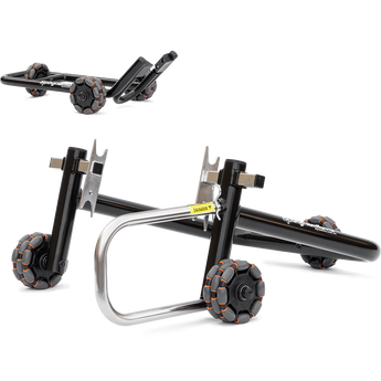 Single-sided Rear Stand: Fits bikes with a single-sided swingarm and a large central hollow in the rear wheel hub. Interchangeable spindles easily adapted for different brands of bike: BMW, Ducati, MV Agusta, Honda, KTM, Triumph.